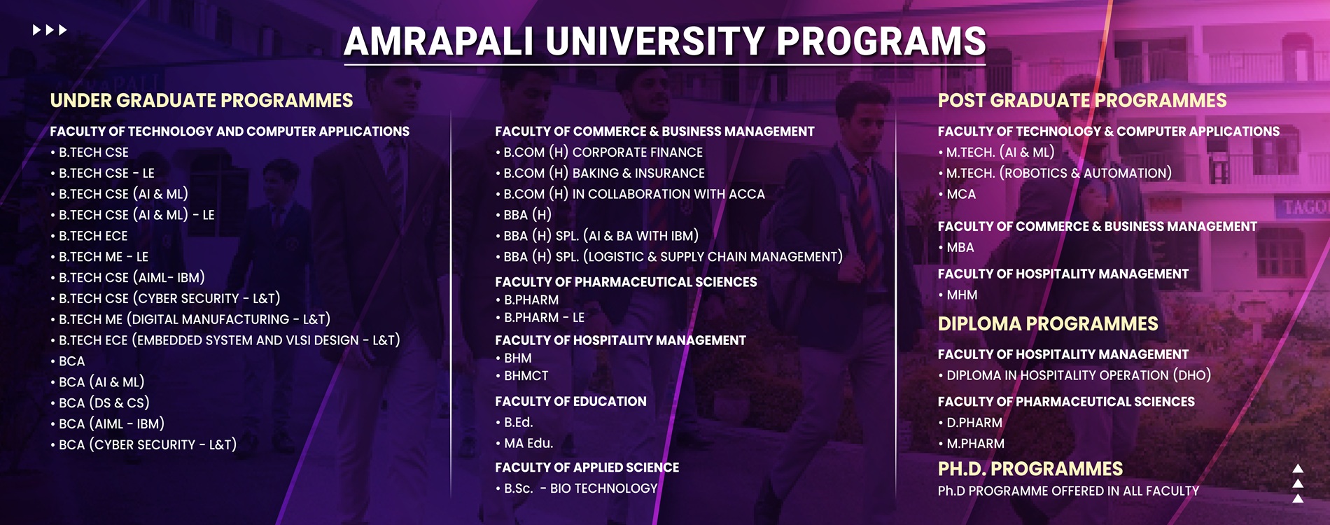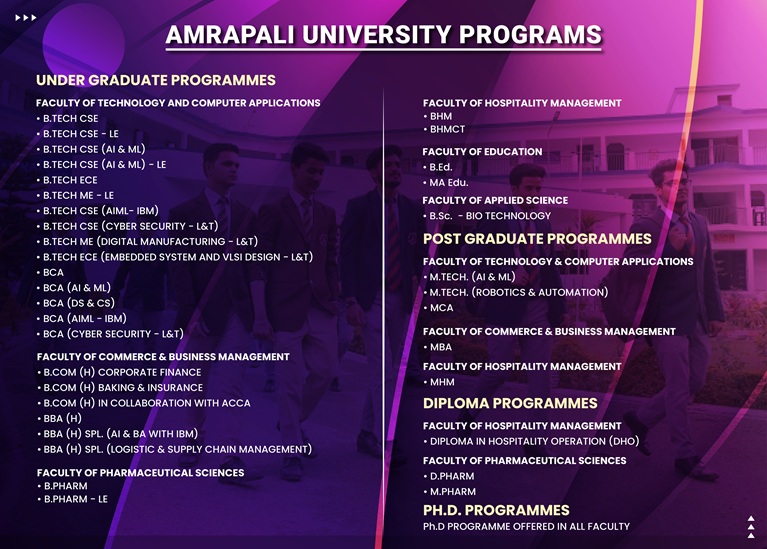 The University is benchmarking newer milestones in modern education by imparting employment-oriented, all-encompassing education through a wide spectrum of programmes across disciplines and streams. AU’s innovative spirit and entrepreneurial perspective encourage students, staff and faculty to challenge convention, lead discovery, and explore new ways of learning.